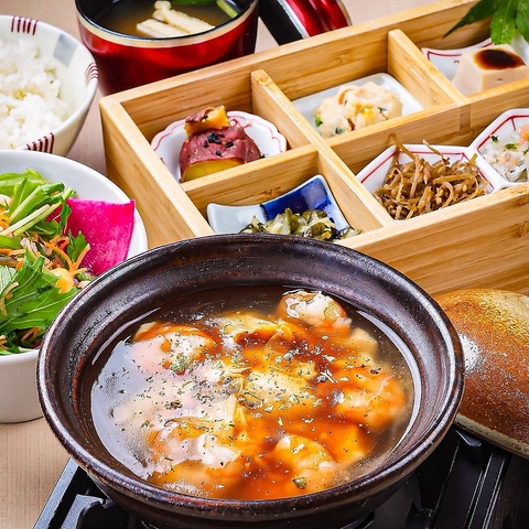 京料理ならではのおばんざいが楽しめるお膳メニュー♪手作り豆腐やお野菜、お魚、鶏、などその日の気分に合わせたメインをご用意。女性同士のお食事や仕事帰りやご顔族でのお食事やランチなど幅広い食事シーンに相性抜群◎食後のスイーツセットも別途ご用意しております♪