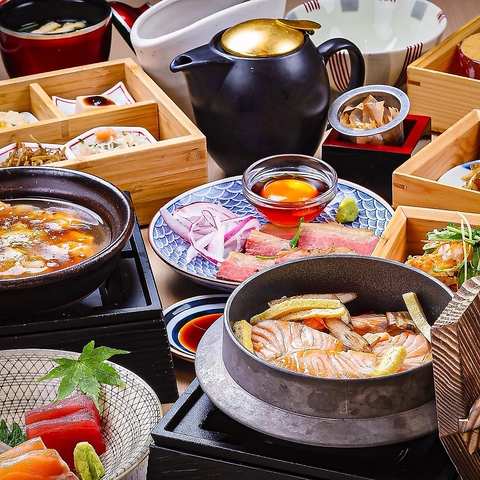 「がんこ」系列が手がける創作和食店「二条茶寮」。京野菜や旬の素材を使ったおばんざい膳は、見た目も美しく味も繊細。選べる釜飯は鯛・黒毛和牛すじ・サーモンなど多彩で、香り高い出汁が食欲をそそります。落ち着いた空間で、昼も夜もゆったりとした和の時間をお楽しみください。