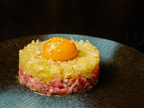 ※宮古牛の希少部位を使用した宮古牛ユッケ自家製ネギ塩ダレと白トリフゥ塩との相性抜群ほくほくご飯と組み合わせも最高の一品作り上げて降ります。1日数量限定販売とさせて頂きます。