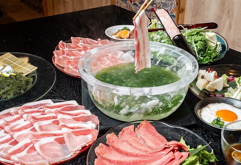 純度の高い天然水晶を使用した「水晶鍋しゃぶしゃぶ」。水晶の浄化作用が食材の臭みを消し、同時にデトックス効果も期待できる当店独自のしゃぶしゃぶ鍋です。◆アーサー(あおさ)を浮かべた絶品ダシのしゃぶしゃぶが人気◆透明でかわいい見た目はSNS映えも抜群♪自慢の宮古牛・アグー豚など最高級のお肉を最高の形で..。