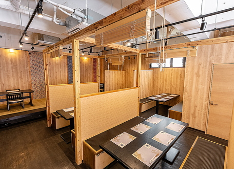 小上がりテーブル・テーブル・個室完備◎お子様・団体様でもゆっくりとお寛ぎいただけます。