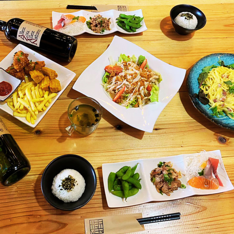 当店では、種類豊富なお酒もご用意しており、それに良く合うおつまみメニューも多数ご用意しております!定番の枝豆やフライドポテトはもちろん、お食事としても楽しめる3種のチーズピザなどもリーズナブルにお楽しみいただけます♪是非お好きな一杯と共にお楽しみください!