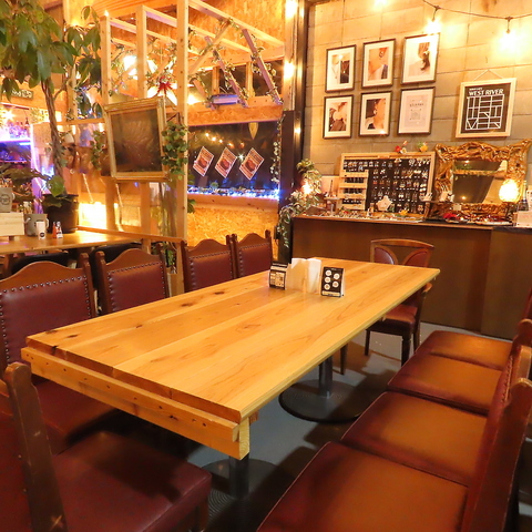 【リラックスできる素敵な空間】店内にはゆったり座れるテーブル席をご用意しており、心地よくお過ごしいただけます。古き良き時代の趣を残しつつ、モダンなデザインが光るお洒落なカフェ&バーで、ゆったりとした時間をお楽しみください♪駐車スペースも20台ほど停めれますので車でのご来店も大歓迎です◎