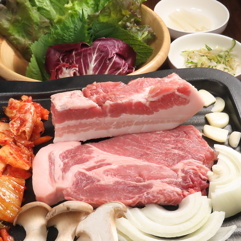 北海道産のむぎ豚を使用した厚さ3.5cmのサムギョプサルです。スタッフが丁寧に焼き上げるので、最高なサムギョプサルを召し上がれます!