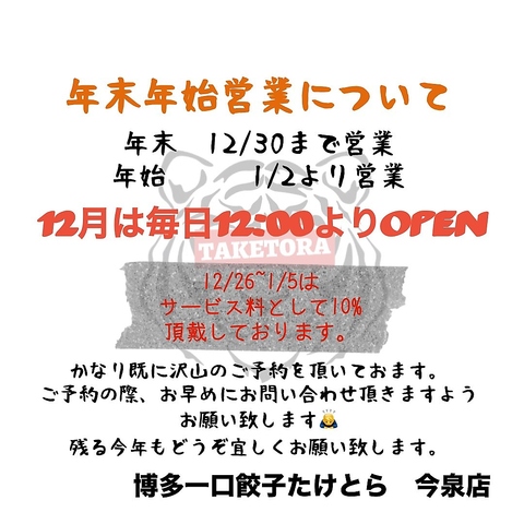| 店名 | 博多一口餃子たけとら 今泉店 |