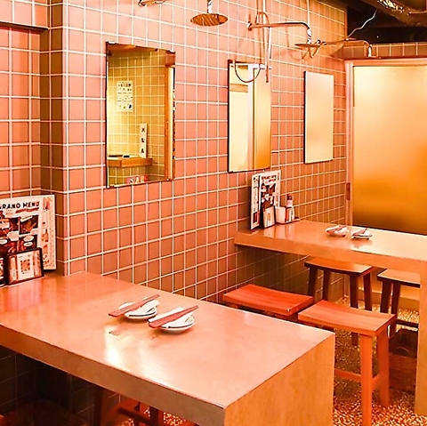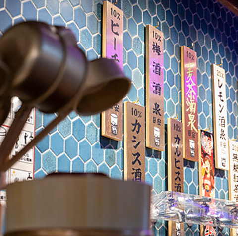 “入浴”しながら飲める!?銭湯の浴場をイメージした店内には、 タイル風の壁や風呂桶、シャワーの演出も!風呂上がりの一杯気分で盛り上がること間違いなし◎