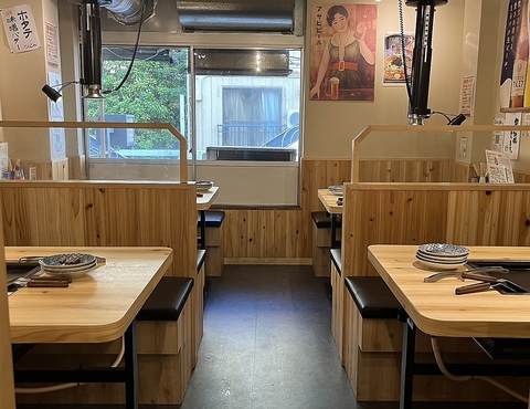 およねさんは各テーブルにすべて仕切りを設けており、他のお客様としっかりと分けてご案内をしております。