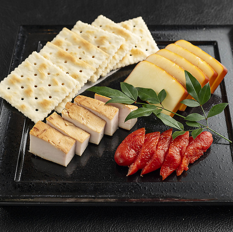 信玄どりむね、チーズ、明太子に燻製チップで香薫をまとわせ、お酒に合う香り豊かで味わい深いの一品