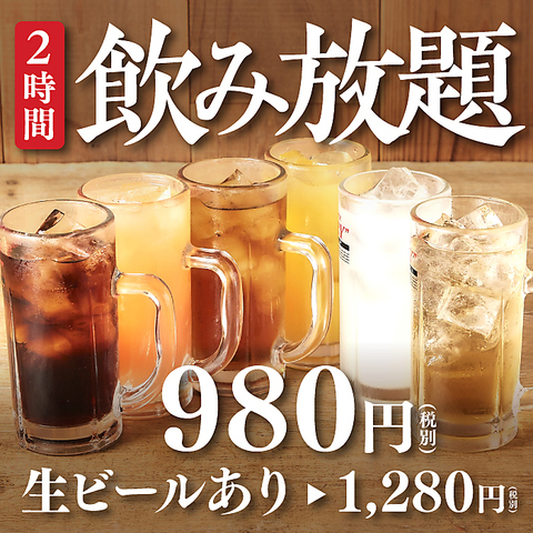 お得な☆2時間飲み放題980円(税込1078円・生ビールなし)1280(税込1408円)生ビールあり】詳細はクーポンへ