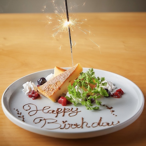 事前予約で誕生日、記念日のお祝い事にぴったりのメッセージ付きデザートプレートを1000円にて贈呈致します