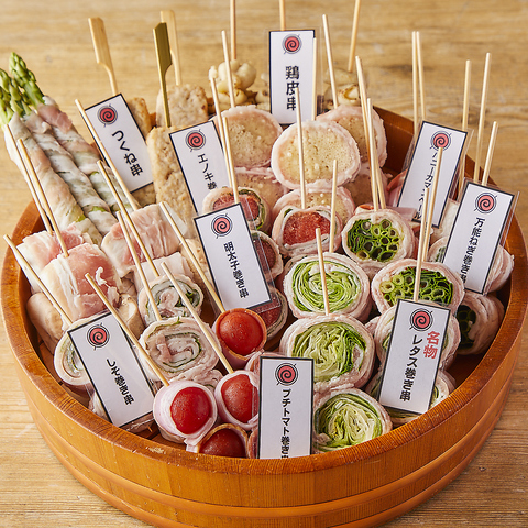 うずまきでしか食べられない!?独自の味付けで食材達の一期一会を表現♪料理長の遊び心が詰まった名物料理をご堪能してください!季節限定串・プチトマト巻・レタス巻・しそ巻・万ネギ巻・豚バラ串・鶏皮串etc...コスパ良し!ビールにもハイボールにも焼酎にも合う逸品です♪