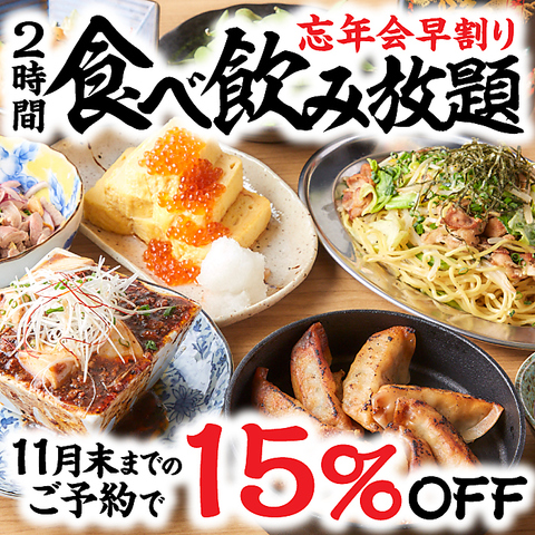 人気の食べ放題&飲み放題コースが登場!水戸駅徒歩10分♪当店では、全100品の食べ飲み放題コースをご用意しております。看板メニューの餃子をはじめ、唐揚げ、海鮮、逸品料理、デザートまで、バラエティ豊かなラインナップ。2時間の飲み放題には、生ビールや焼酎、カクテルなど多彩なドリンクを取り揃えております。