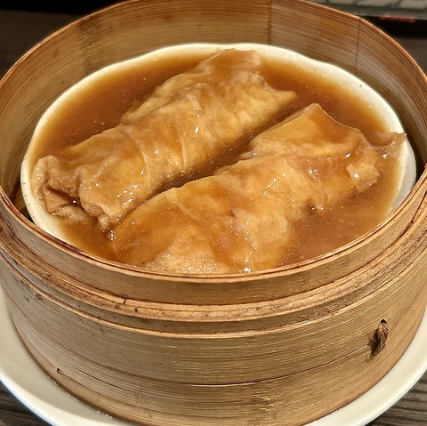 瀬戸内六穀豚と野菜を湯葉で包み込みオイスターソース風味に仕上げた一品