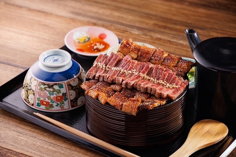 うなぎと和牛が織りなす、和牛うなぎ櫃まぶし御膳とスタンダードなうな重御膳が登場♪香ばしく焼き上げたうなぎと、柔らかな和牛を一度に味わえる、まさに至福の逸品。お膳には、漬物、上品なうまき、山形の出汁、お吸い物をご用意。最後まで様々な味の変化を愉しめます。ボリューム満点かつ豪華な御膳です♪