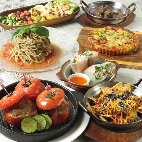 ゆったり3時間プラン♪まるごとトマトのごちそうハンバーグや、とろ~りチーズのラザニアなど“映えて美味しい”全7品+デザート。3時間飲み放題付きだから、トークも写真も余裕たっぷり楽しめます。「贅沢なのにリーズナブル」な¥3,900設定で、幹事様にも安心の女子会プランです!
