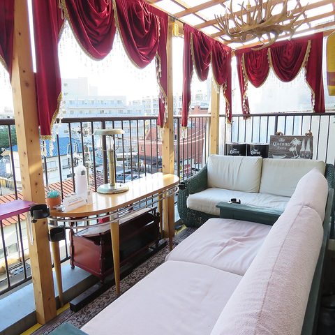 【女子会やサプライズに♪】テラス席は完全個室でご案内!ビニールで覆われているため雨でも安心♪開放的な空間で、ご友人同士の飲み会や女子トークを楽しみたい方におすすめです。ソファでゆったりくつろげるのも嬉しいポイント♪2~7名様でご利用可能。宴会やパーティーでのご利用にも最適です♪お気軽にお越しください