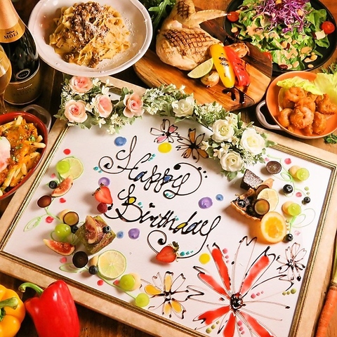 大切な方へ、誕生日・記念日は思い出に残る素敵なサプライズでお祝いを☆メッセージ付きの特製デザートプレートをクーポンご利用でプレゼントいたします☆大切な方へのお祝いはプライベート個室でゆっくりとお過ごしください♪季節ごとに雰囲気が変わるユニークな店内と、当店自慢の自家製スイーツを是非ご堪能ください♪