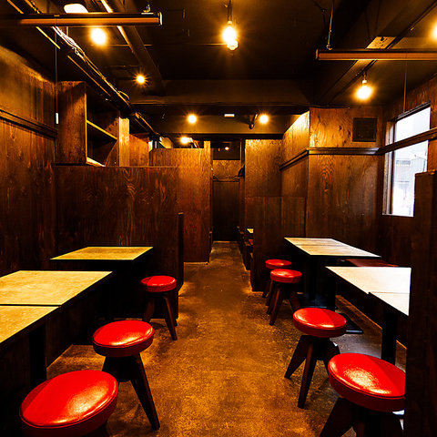 赤い丸椅子が映えるレトロ感漂うテーブル席!少人数のカジュアルな宴会にもピッタリで、サクッと立ち寄れる気軽さも魅力!程よい距離感と温かな照明が、自然と会話を弾ませてくれる、居心地の良さです!