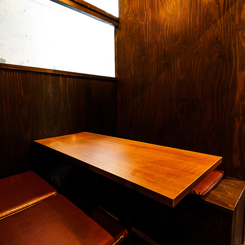 シンプルで無駄のない、まるで秘密基地の小部屋のようなカップルシート!木の質感を活かした壁とコンパクトなテーブル、落ち着いた照明が心をほぐし二人の距離もぐっと近づきます!サシ飲みにも最適です!