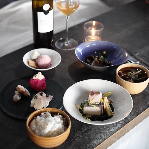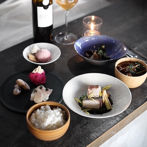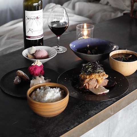 農家さんや自社農園から届く、季節の香り漂う旬の食材を使ったディナーメニューになります。こだわり抜いた料理とお酒を楽しみながら、素敵な時間をお過ごしいただけます。