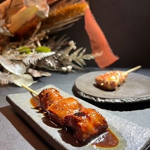 当店に来たらぜひ食べていただきたい自慢の「醤油焼鳥」です。継ぎ足しで作る特製の甘醤油と炭火で一本一本香ばしく焼き上げています!旨みが凝縮された但馬鶏は、噛むほどにジューシーな肉汁が溢れ出します!数量限定の「ねぎま」をはじめ、人気の「せせり」や「ぼんじり」など、多彩な部位をご用意しています♪