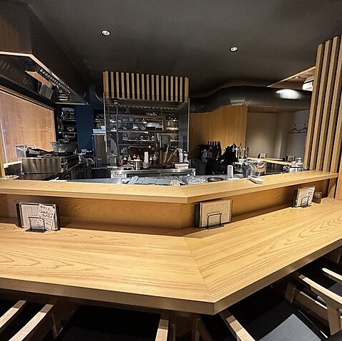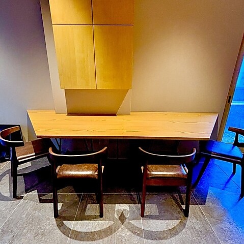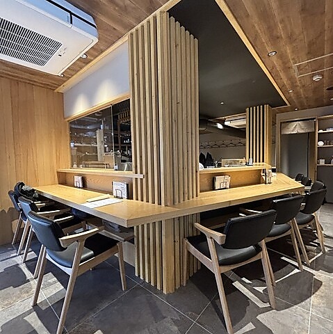 隣との間隔が広く、ゆったりとした造りのカウンター席です。一人でゆっくり飲みたい時や、大切な方と落ち着いて食事を楽しみたい時におすすめです!