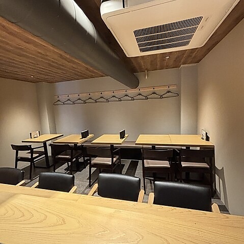 木目調のカウンター席が広がる店内は、落ち着いた大人の隠れ家のような雰囲気です。温かみのある照明が心地よく、ゆっくりと流れる時間の中で、こだわりの焼き鳥を心ゆくまでお楽しみいただけます。デートや記念日などの特別な日にはもちろん、一人でゆっくり飲みたい時にも最適です。