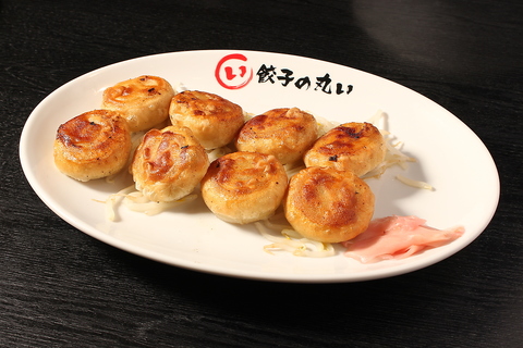 名鉄栄生駅徒歩2分、気軽に立ち寄れる〈餃子の丸い〉。丸くて大きい、カリモチ食感と肉汁たっぷりの“新感覚餃子”を堪能できる居酒屋で、小規模宴会/貸切可能!2時間飲み放題付き9品コースはお一人税込4,000円で、グループ飲みや宴会にもぴったり!