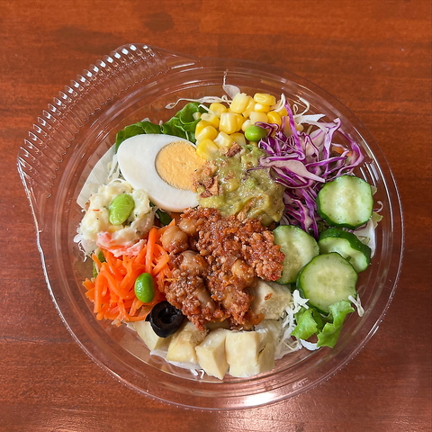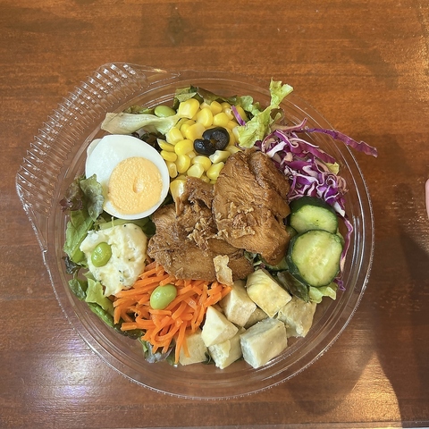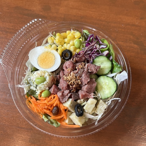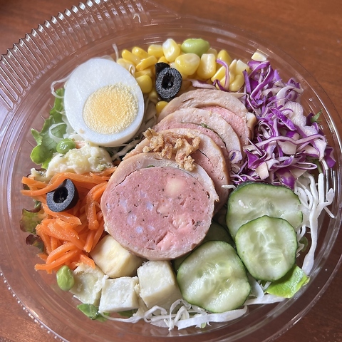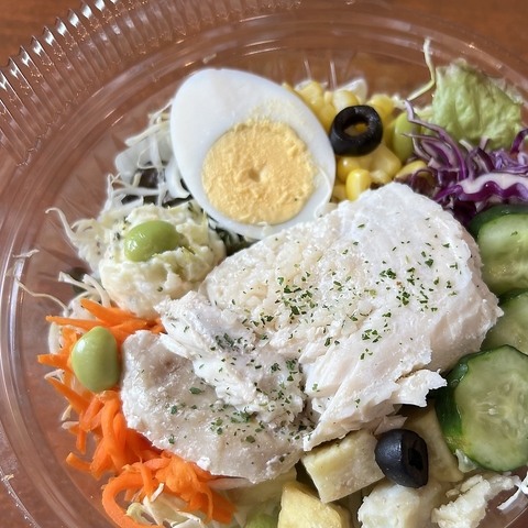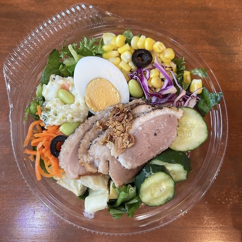 自家栽培のレタスをふんだんに使用したサラダです!高タンパク質で低カロリーのサラダチキンは筋力アップやダイエットを意識されている方にオススメ♪