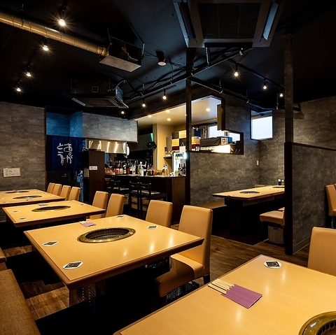 | テーブル | 4名様×5 | 4名様掛けのテーブルを5卓ご用意しております。ご友人と、ご家族と焼肉をお楽しみください。テーブル席の片側はベンチシート。横一列で最大20名まで一緒の空間でお楽しみいただけます。 |