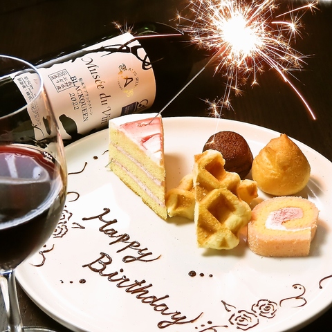 メッセージ付きのデザートプレートでサプライズの演出も可能です!また、お誕生日や記念日などのお祝いにぴったりなコースをご用意しております♪ご希望のお客様はお気軽にお問合せください♪