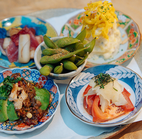 9種類の美味しいおばんざいをお好みでお選びいただけるメニューが1078円(税込)~ございます。3種・5種・8種の盛り合わせからお選びください。スタッフおすすめの盛り合わせも可能ですので迷ったときも安心です◎ぜひ自分だけの特別なおばんざいをお楽しみ下さい。