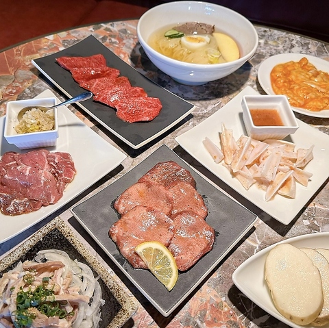 味楽苑の看板メニューささまホルモンや大人気上塩タンをはじめ、定番のキムチ・チョレギサラダ、冷麺も味わうことが出来ます!和牛タレ焼きはジューシーな味わいが口いっぱいに広がり、是非食べていただきたい一品。ご家族や友人との集まり、宴会にもぴったりのお得なメニューが揃っているのできっとご満足いただけるはず♪