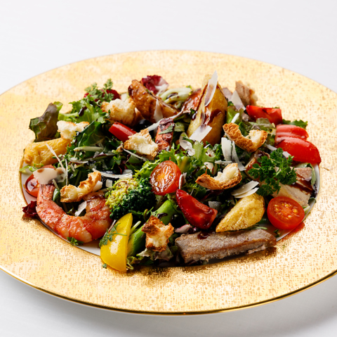 旬の味覚を楽しむ、季節のお野菜とシーフードプレート。シェフが厳選した新鮮な魚介と、その時期ならではの彩り豊かな野菜を贅沢に盛り合わせました。ヘルシーでありながらも満足感のある一皿に。瑞々しい野菜の甘みとシーフードの旨味が絶妙に調和した四季折々の美味しさをぜひお楽しみください◎