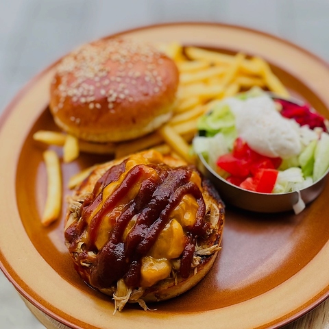 とろけるアボカド、香ばしいベーコン、コク深いチーズ。この3つが絶妙に重なり合い、ひと口ごとにリッチな味のレイヤーが広がります。フレッシュでなめらかな食感とボリューム感のバランスが良く、男女問わず人気の一品。見た目の映えも抜群で、つい写真に収めたくなるバーガーです。