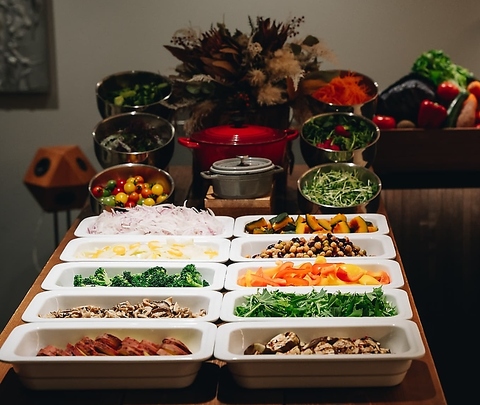 ランチタイムには、旬の新鮮な野菜を贅沢に楽しめるサラダバーが魅力☆色とりどりの野菜が並び、目にも楽しいひと皿を自分好みにカスタマイズできます!サラダだけでなく、温かい料理にも新鮮な素材がふんだんに使われていて、健康的で美味しい♪友達とシェアしながら、色々な味を楽しむことができるのも嬉しいポイントの一つです◎