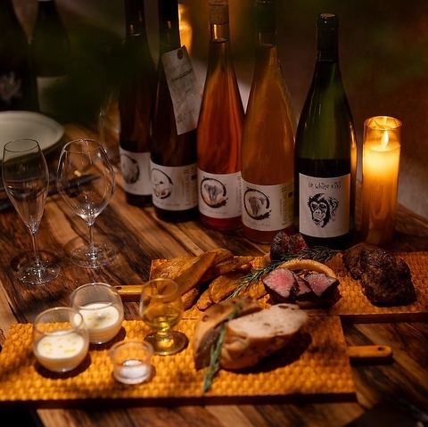 ナチュラルワインを中心にびっしり入ったワインボトルに目を奪われます。ボトルワインは4000円から飲めて、グラスワインやワイン飲み放題などワイン好きにたまらないお店。ワインが苦手な方、ワイン初心者の方に、、、店主が皆様にあった最高のワインをセレクトしてくれます◎