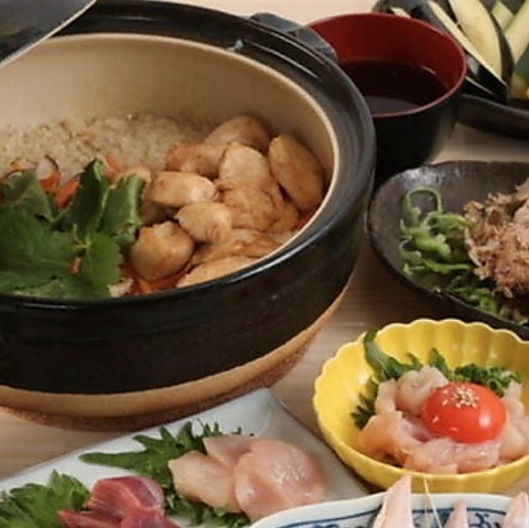何を食べるか迷ったら、当店の鳥づくしコースがおすすめです。特に『極上鳥三昧よく食べ萬年コース』は、鳥料理の美味しさを極めた、全16品の豪華な内容です。名物のももタタキや鳥ユッケ、鳥刺しといった贅沢な逸品から、〆の釜めしまで一度に堪能できます。飲み放題付でお得に満喫◎