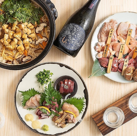 【極上鳥三昧!よく食べ萬年コース】2時間飲み放題付!特上造り盛り5種・鳥焼き5種・釜飯など全17品!