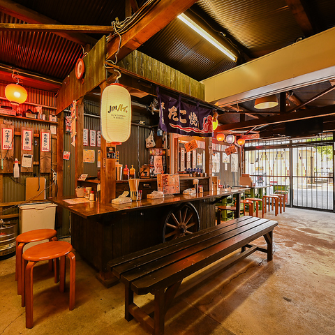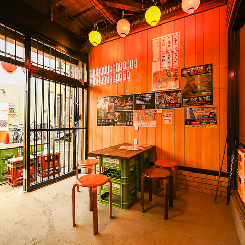 店の入り口にあるテラス席は、コンテナをテーブルにしたユニークなデザインです。外の風景を眺めながら、リラックスした雰囲気の中で楽しくお酒を楽しむことができます。心地よい風を感じながら、友人や仲間と素敵なひとときを過ごしてみませんか?ぜひお気軽にお立ち寄りください♪