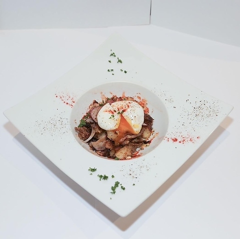 トリュフオイル仕立てのこちらのポテサラは、名前の通り賞味期限が5分。卵も一緒にお召し上がりください。
