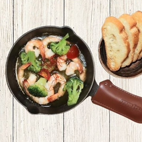 海老とブロッコリーなど具材はもちろんのこと、旨味の滲み出たオイルにバケットを浸して食べるとまた格別◎
