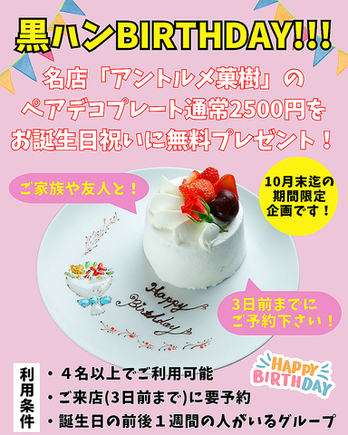 お誕生日やお祝いに!名店「アントルメ菓樹」のデコプレートをプレゼント!詳細はコースページをご覧下さい