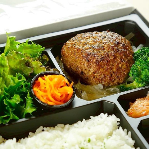 本格的な黒毛和牛を使ったハンバーグが入ったテイクアウトメニュー、「黒ハン」弁当は3種ご用意しております。王道をシンプルに楽しんでいただけるハンバーグ弁当、ロースステーキとハンバーグを両方楽しめる贅沢なコンボ弁当、サラダがたっぷり入ったヘルシーなお弁当など、お客様の気分や好みに合わせてお選びいただけます。