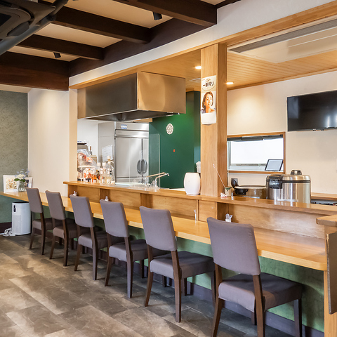 料理を待つ間も楽しい、調理している様子を間近で見ることができるカウンター席です。おひとり様はもちろん、親しいご友人や気の合う同僚とのご利用にもピッタリです。自然と会話が生まれるので、待ち時間も短く感じられます。テーブルなどは木を基調とした内装となっているので、温かい雰囲気で居心地も抜群です◎ぜひお気軽にご来店ください☆