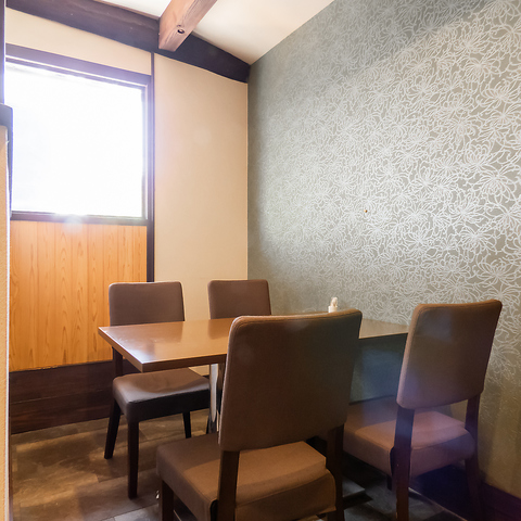 4名様までゆったりとご利用いただけるテーブル席をご用意しております。ご家族での和やかなお食事はもちろん、親しいご友人との気軽なランチなど、少人数での集まりに最適です。木目を基調とした落ち着いた空間で、周囲を気にせず、心ゆくまで会話とお料理をお楽しみいただけます。思い出に残る時間を、お過ごしください。