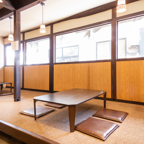 天井の力強い梁など、随所に和のぬくもりと趣が感じられる店内は、どこか懐かしく、心を安らげる空間です♪足を伸ばしてくつろげる広々としたお座敷席は、畳の香りに包まれながら日常の喧騒を忘れ、ゆったりと腰を落ち着けていただけます。厳選された旬の料理を心ゆくまで味わいながら、至福の時間をお過ごしくださいませ☆