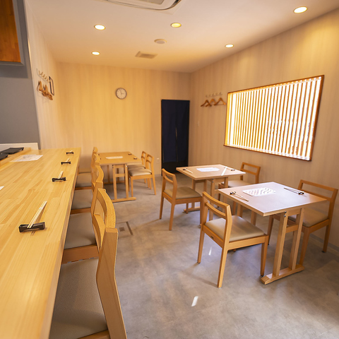静かな住宅街にひっそりと佇む隠れ家のような鮨屋。落ち着いた店内にはテーブルとカウンターを完備しております。カウンターは至近距離で職人技を楽しめるライブ感ある特等席となっております。ご注文したお寿司の完成過程をお楽しみください。さらに、カウンター限定の特別なコースもご用意。思い出に残るひと時をお過ごしください。