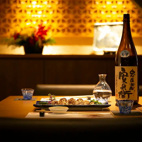 お料理に合わせた日本酒、焼酎やウイスキーの銘柄酒を多数ご用意!コースは全て3時間飲み放題付で、銘柄酒含むプレミアム飲み放題への変更は+800円と、お手頃価格にて変更可能◎2時間飲み放題単品コースのご用意もあるので、自慢のお料理と合わせてリーズナブルにご堪能も可能♪全席完全個室でご用意しておりますのでシーン問わずご利用に最適◎