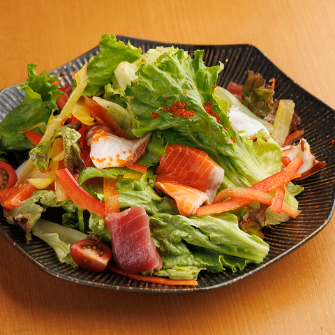 コースは全て京風和食を彷彿とさせる創作和食の前菜に始まり、こだわりの直送鮮魚を日替わりにてご提供!他にも蟹やいくら、海老などの海鮮食材から、系列店のメイン料理である牛タンや地鶏まで、幅広い食材をご堪能いただけます。職人技の光るお寿司や天ぷらも絶品で、鍋料理も種類豊富!+800円でプレミアム飲み放題へ変更可能♪完全個室も◎